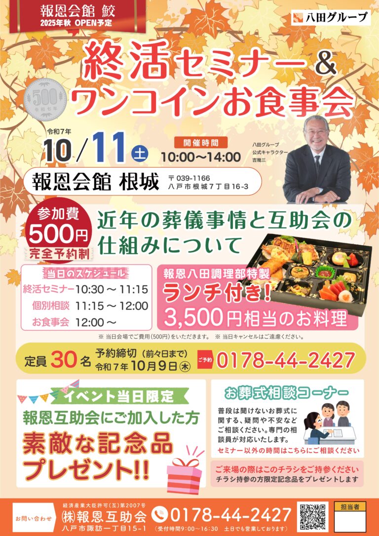 終活セミナー&ワンコインお食事会[根城]