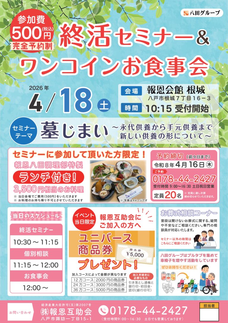 終活セミナー&ワンコインお食事会[白銀・根城]