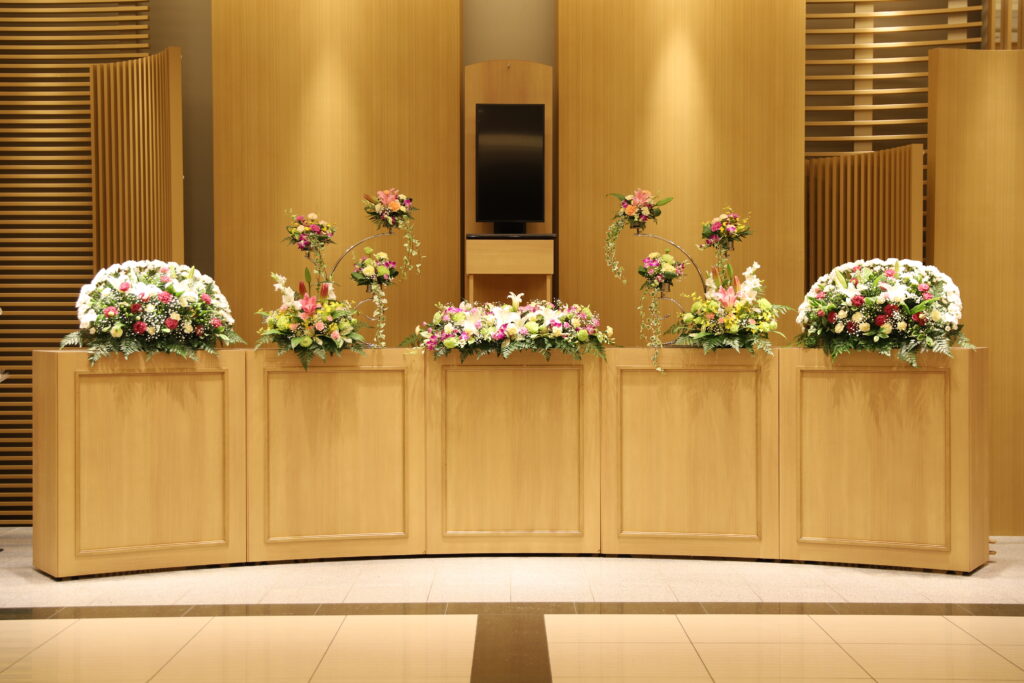 企業を挙げて功労者を追悼し偲ぶことは、故人様への何よりの供養であると共に、新体制での事業継承を訴え社内には志を受け継ぎ決意を新たにする場であるとも言えます。当社の生花部が直接お客様と打合せをして祭壇生花をオーダーすることも可能です。